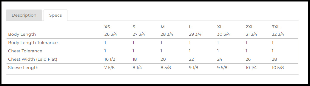 - Classic Fit – Unisex Size Chart